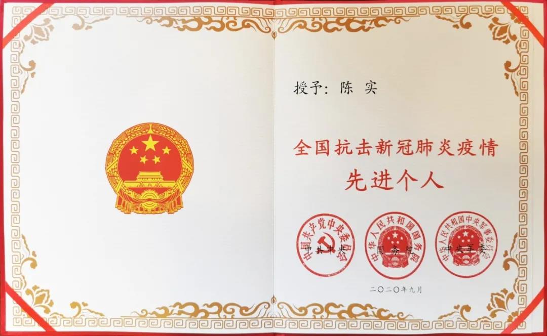 【要聞】在人民大會堂,陳實(shí)同志獲頒全國抗疫先進(jìn)個人