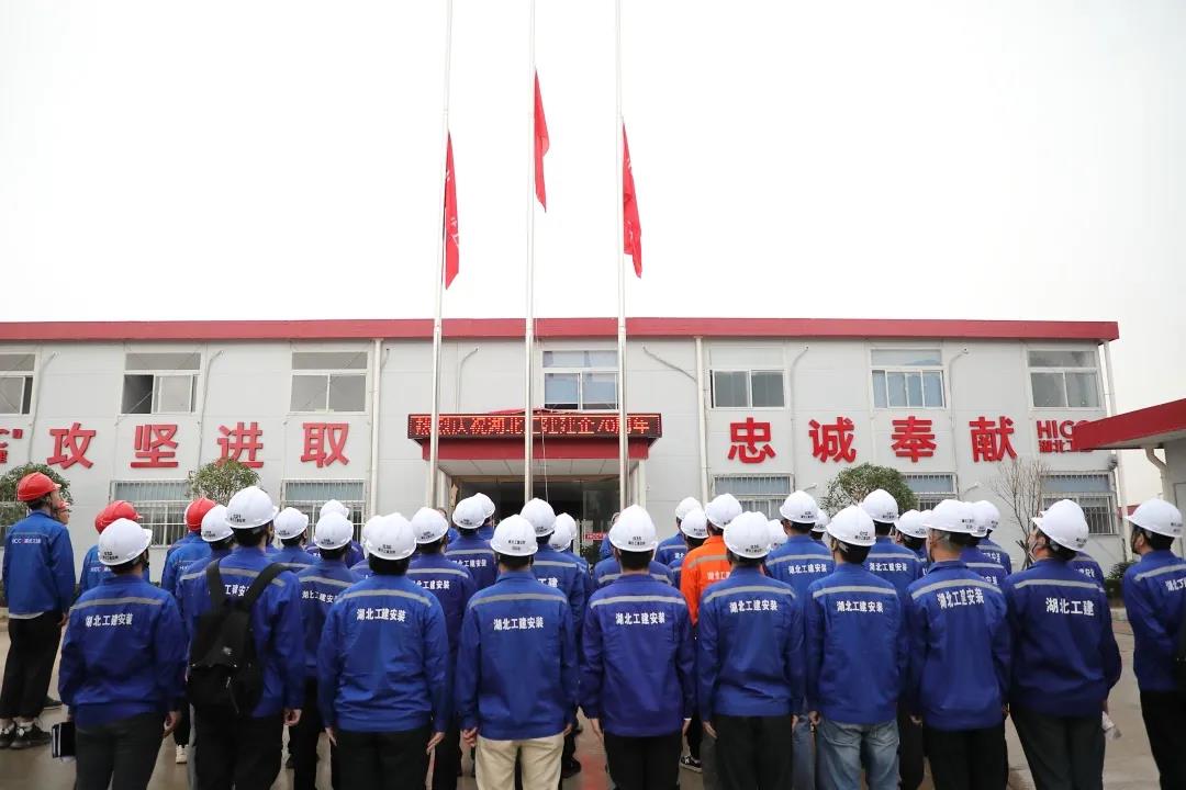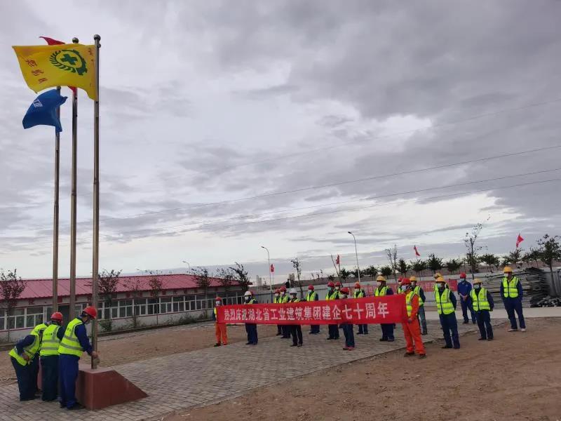 2020年9月19日,為慶祝湖北省工業(yè)建筑集團有限公司建企70周年,湖北工建安裝公司在湖北工建機電科技產(chǎn)業(yè)園項目隆重舉行升旗儀式。9時19分,在雄壯有力的義勇軍進行曲的伴奏下,現(xiàn)場全體干部職工注目鮮紅的五星紅旗和湖北工建司旗緩緩升起,齊聲高唱國歌,滿懷豪情地迎接湖北工建集團70周歲生日。